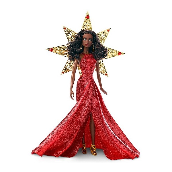 Barbie Magia delle Feste 2017 è adornata con una scintillante stella doro per ricordare tutti i momenti più splendenti della tua vita. L’eleganza di questa Barbie afro è sottolineata dall’acconciatura ricercata, con una treccia a corona e i restanti capelli lasciati sciolti e vaporosi. La stella si abbina perfettamente al suo abito da festa rosso metallizzato e agli orecchini pendenti. Barbie Magia delle Feste 2017 vuole ricordarti di sognare in grande, di vivere con coraggio e di brillare sempre di più. Gli eleganti accessori che includono orecchini pendenti e scarpette completano il suo look da festa.