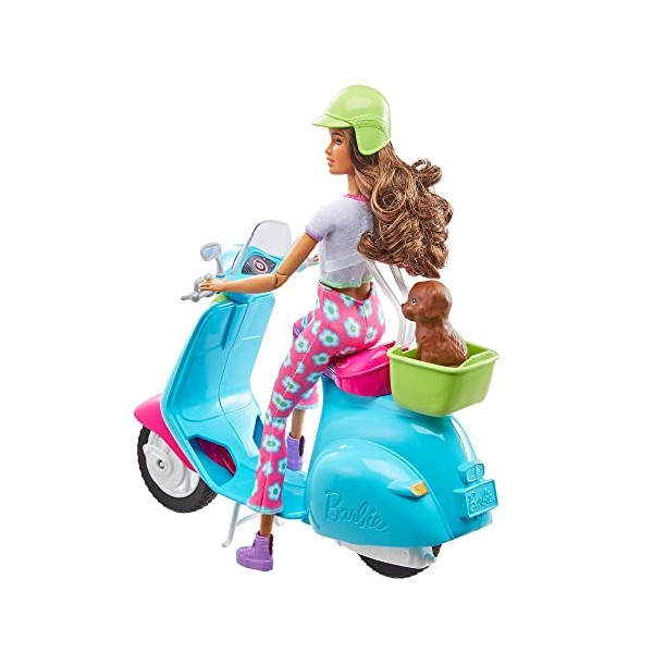 Barbie è pronta per qualsiasi avventura insieme al suo cagnolino con una t-shirt alla moda con grafica LOVE, pantaloni a zampa di fiori stampati ed eleganti sneakers con plateau.