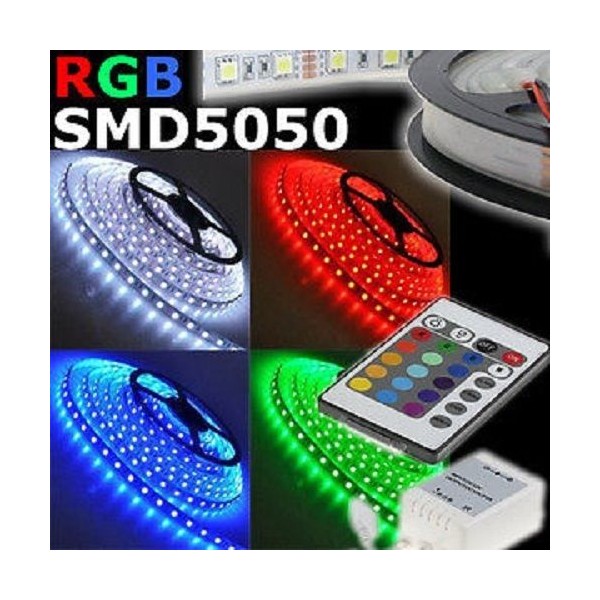 BOBINA STRISCIA 300 LED SMD 5050 5METRI 12V RGB + CONTROLLER TELECOMANDO