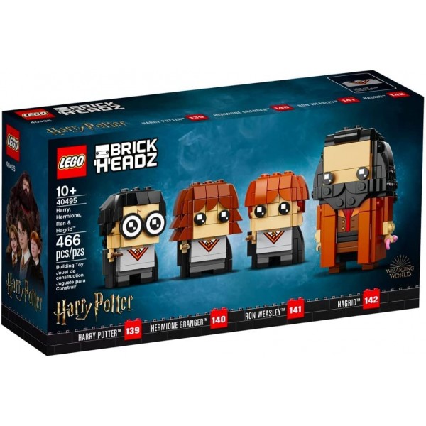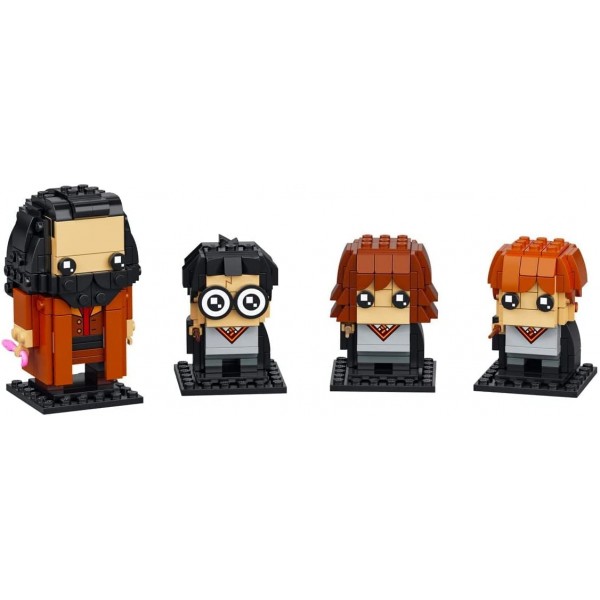 Ricreazioni LEGO® BrickHeadz™ dei 4 personaggi più famosi dei film di Harry Potter™: Harry Potter, Hermione Granger™, Ron Weasley™ e Rubeus Hagrid™.