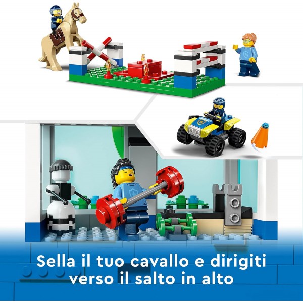 Il set Accademia di addestramento della polizia LEGO® City (60372) è caratterizzato da una stazione di polizia modulare a più stanze e da un percorso a ostacoli all’aperto con divertenti strutture, tra cui una parete da arrampicata, una scala orizzontale e una teleferica. Include anche un fuoristrada sterzabile, 6 minifigure e un cavallo.