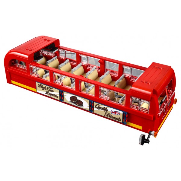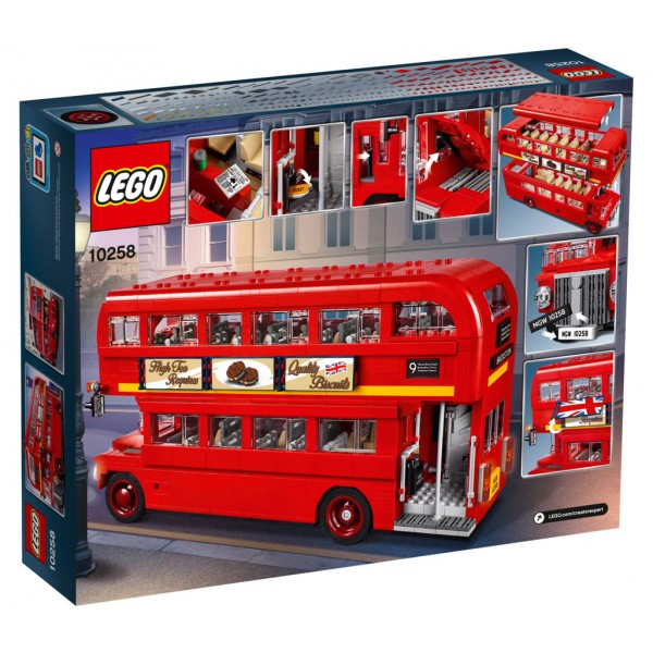 Ammira l’iconico design di questo affascinante autobus a due piani di Londra, ricco di autentici dettagli, tra cui la brillante livrea rossa, il parabrezza panoramico, gli pneumatici con battistrada appositamente realizzati, display della destinazione e piattaforma di imbarco posteriore aperta con reggimano verticale, cestino dei biglietti usati, estintore e una scala che porta al piano superiore panoramico. Le funzioni includono il cofano apribile con motore, cabina di guida dettagliata con una porta scorrevole e tetto e ponte superiore rimovibili per accedere all’interno particolareggiato dotato di sedili logori e ulteriori dettagli originali, tra cui un ombrello dimenticato, un giornale, una lattina vuota e gomma da masticare. Sono anche incluse etichette stampate con poster reversibili di pubblicità degli anni ‘50 o della Londra moderna. Questo modello LEGO® Creator Expert è stato progettato per offrire un’esperienza di costruzione stimolante e gratificante, con un pizzico di nostalgia e fascino d’epoca.