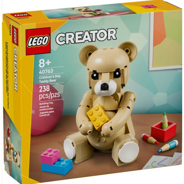 Festeggia la Giornata dei bambini con il simpatico e personalizzabile giocattolo costruibile dell’Orsacchiotto della Giornata dei bambini LEGO® Creator (40763). Questo modello di animale è dotato di testa, braccia e gambe snodabili e viene fornito con una selezione di fantastici accessori per tanti look diversi. I bambini possono aggiungere occhiali e un libro, un farfallino blu, matite e carta, un farfallino rosa e una rosa o un set di 3 mattoncini LEGO in diverse combinazioni.