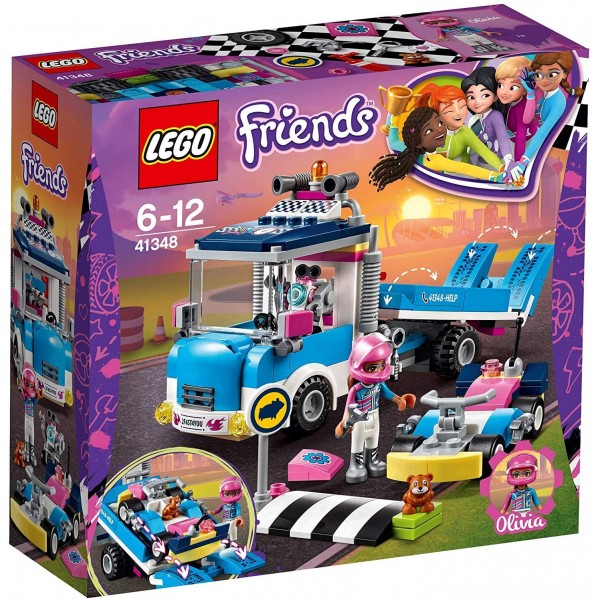 Quando le cose vanno male in una gara importante, chiama il Camion di servizio e manutenzione LEGO® Friends 41348 per assistenza! Porta il go-kart di Olivia in officina inclinando la rampa e usa la corda per issarlo sul camion. Aiuta Zobo il robot a sollevare la piattaforma nell’officina in modo che Olivia possa darci un’occhiata sotto e metterlo a punto con i suoi attrezzi. Quindi salta a bordo con il criceto Rumble usa il lancia-go-kart per partire a tutta velocità in questo fantastico set LEGO Friends!