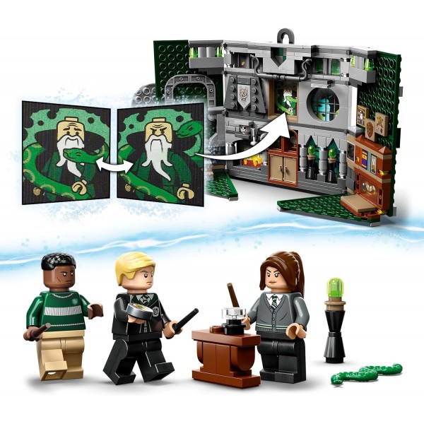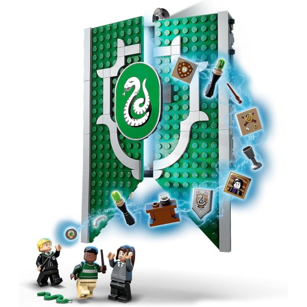 Questo playset portatile è uno dei 4 stendardi della casa di Hogwarts™ da collezionare. Include una minifigure di Draco Malfoy™ e le nuove minifigure di Pansy Parkinson e Blaise Zabini - novità di marzo 2023 - oltre al medaglione di Serpeverde per ispirare le avventure di gioco di ruolo.