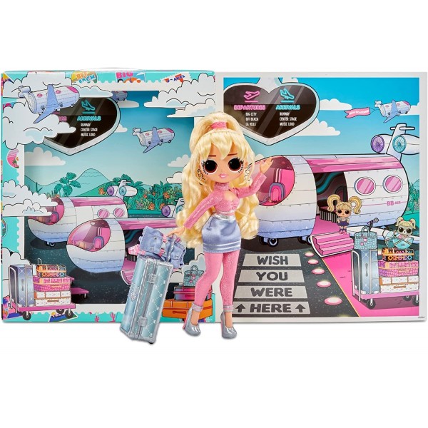La confezione include: 1 bambola alla moda OMG, vestito, accessori, orecchini, scarpe, bagaglio, fascia per assistente di volo, fibbia della cintura, passaporto, spazzola, borsa portabiti, appendiabiti, supporto per bambola e confezione riutilizzabile