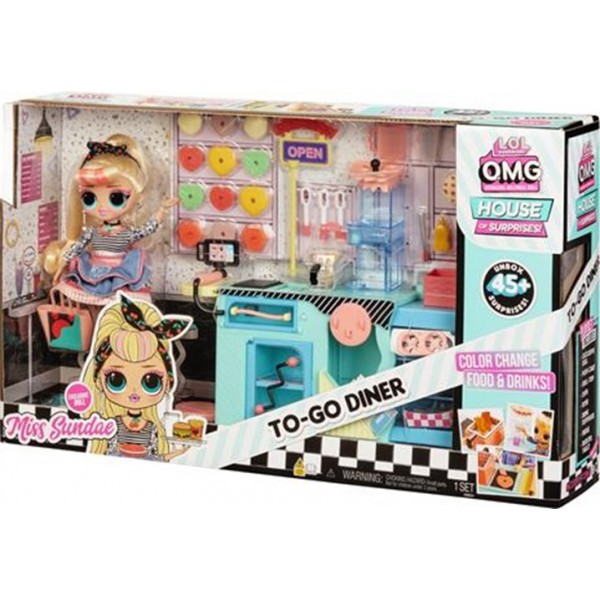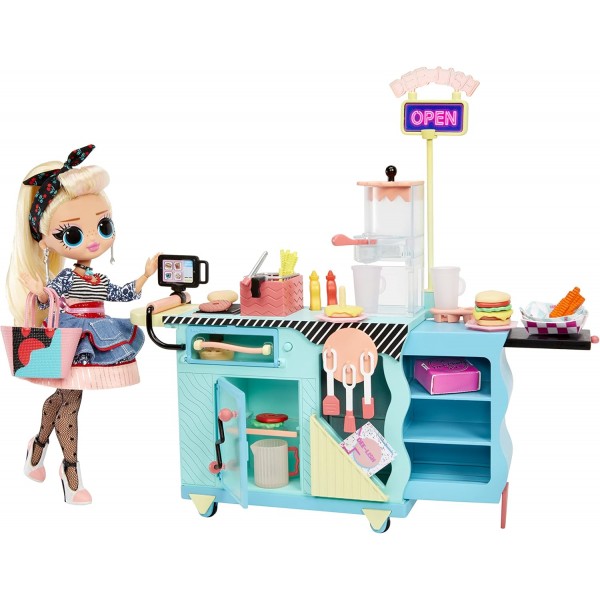 Conosci Miss Sundae, la chef e proprietaria del Dee-Lish Diner, che serve gli hamburger e le patatine fritte più buone della città. Non dimenticare il dolce! Viene con vestiti e accessori su misura, evidenziando il suo stile retrò. Include: una bambola, un playset, un distributore di bevande, un registro per tablet, un menu, accessori da cucina, accessori per il cibo, un vestito, una spazzola per capelli e un supporto per bambole.