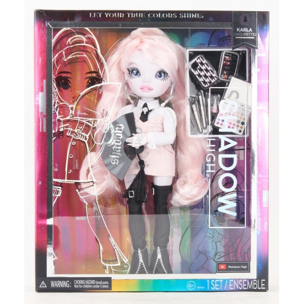 Karla è una stilista ed è dotata di tutto l’essenziale perché la sua modella sia pronta per la sfilata: trucco, pennelli e cellulare con supporto. Abito rosa e bianco con tasche laterali, camicia bianca, cintura, guanti, orecchini, stivali alti al ginocchio, accessori divertenti (ventaglio). Bei capelli rosa ricci, lunghi, ciglia molto lunghe e occhi di vetro. E' completamente snodabile. La testa, le braccia, le mani e le gambe si piegano per tante pose divertenti, comprese le spaccate. Karla è confezionata in una scatola lussuosa con il suo design riprodotto in argento iridescente.