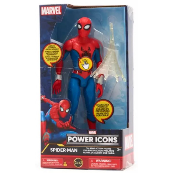 SpiderMan ha un vasto arsenale di frasi da usare con questa action figure parlante. L'action figure presenta un pulsante che attiva le frasi del personaggio (IN LINGUA INGLESE), effetti sonori e luminosi e più punti di articolazione. Inoltre, i cattivi dovranno fare attenzione a non essere catturati dal lancio della ragnatela.