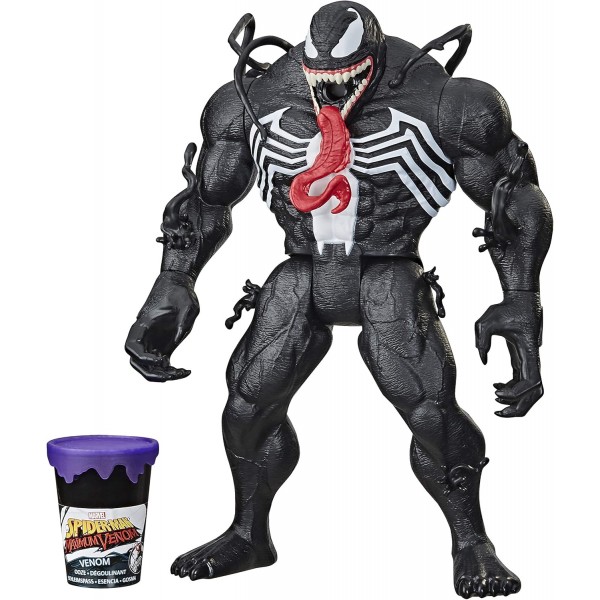 Ricrea il mondo di Maximum Venom con l'action figure Venom Ooze alta circa 30 cm che sgocciola melma appiccicosa dalla sua spaventosa bocca piena di denti affilati! Metti la melma viola (inclusa) nel dorso del personaggio, quindi gira la manopola sul retro per far muovere la lingua di Venom e lanciare la lucida sorpresa simbiotica! Include un barattolo di nauseante melma viola che consente ai bambini di ricreare l'azione raccapricciante e viscida più e più volte!