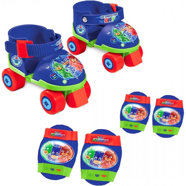 Bellissimi roller per bimba/bimbo con le grafiche del celebre cartone animato Pj Masks. Pattini a 4 ruote facilmente regolabili dalla misura 22 alla misura 29. Il set comprende i pattini e tutte le protezioni per mettere al sicuro i vostri bambini: gomitiere, ginocchiere e la borsa trasparente, perfetta per trasportare il tutto comodamente (casco non presente)