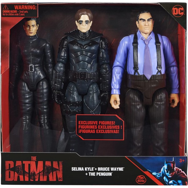 Questo set di 3 personaggi Batman è un must per i fan di questo supereroe. Espandi la tua collezione Batman con le action figure da 30 cm di Bruce Wayne, Selina Kyle e Il Pinguino. Grazie ai suoi 11 punti di articolazione, è molto facile ricreare pose con queste action figure